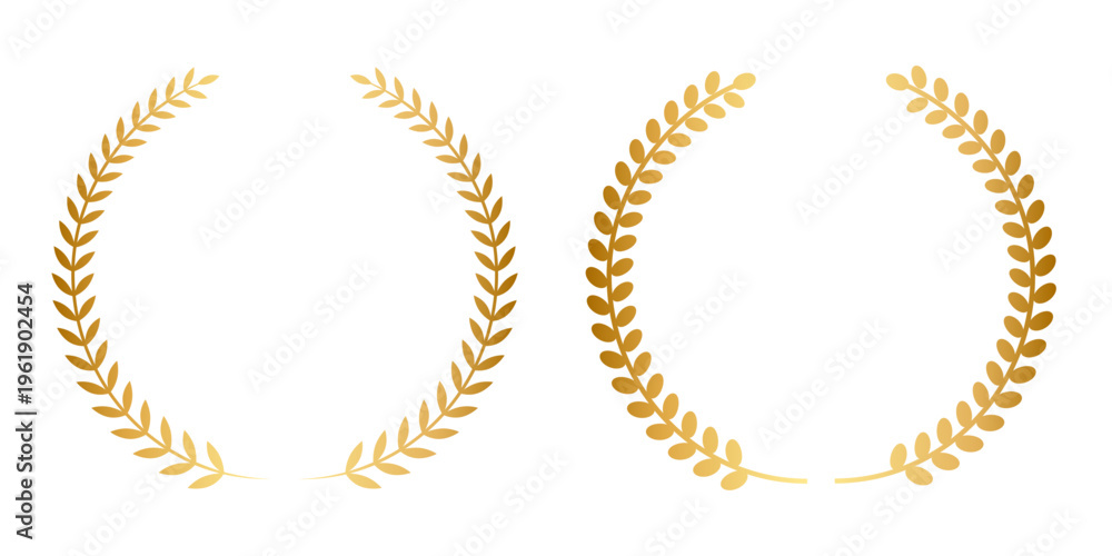 細葉ゴールドローレルリース(円形対称・ミニマル装飾フレーム素材) #1961902454