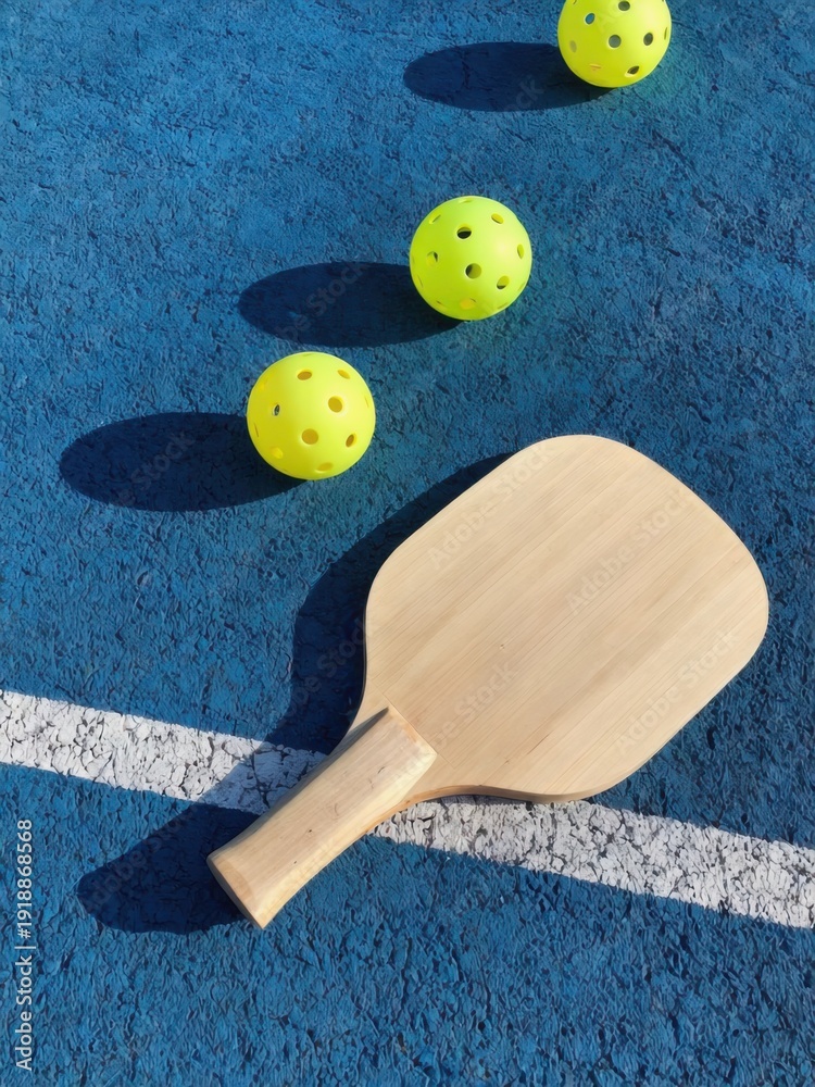 Pickleball paddle and balls on court #1918868568