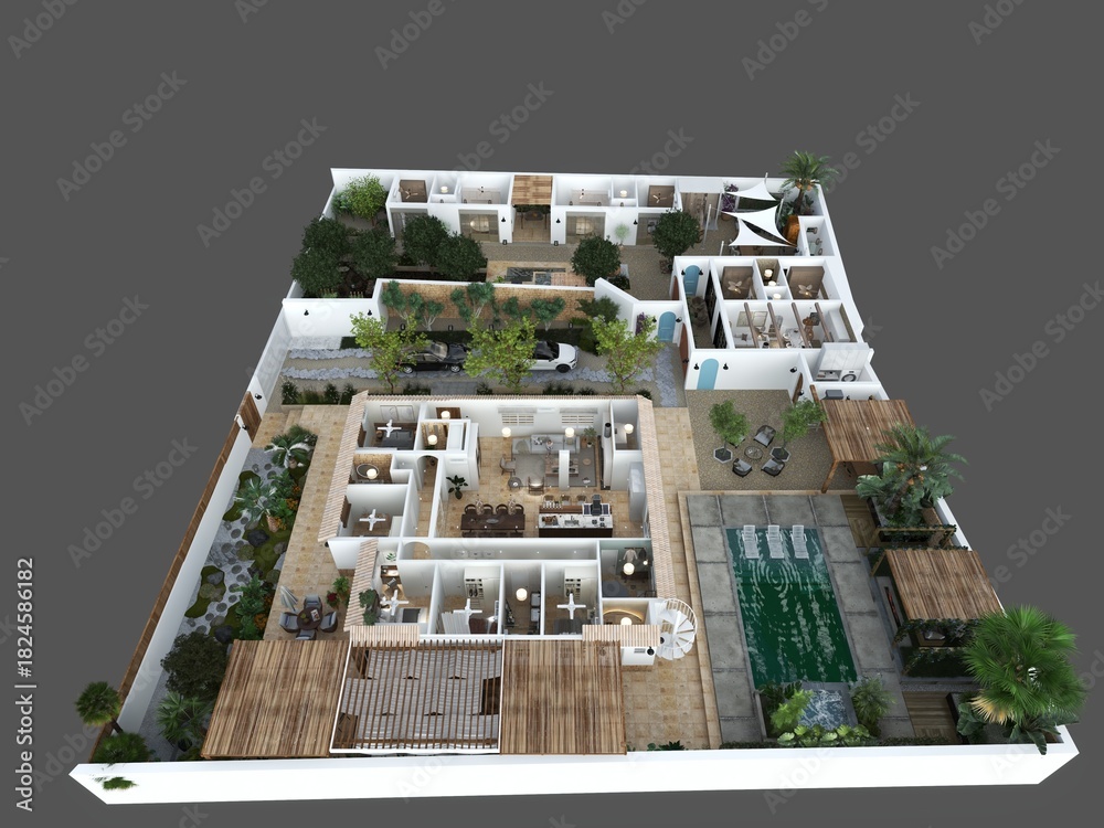 planos 3d de villa de lujo con estilo moderno mediterráneo #1824586182