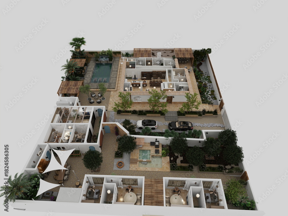 planos 3d de villa de lujo con estilo moderno mediterráneo #1824586305