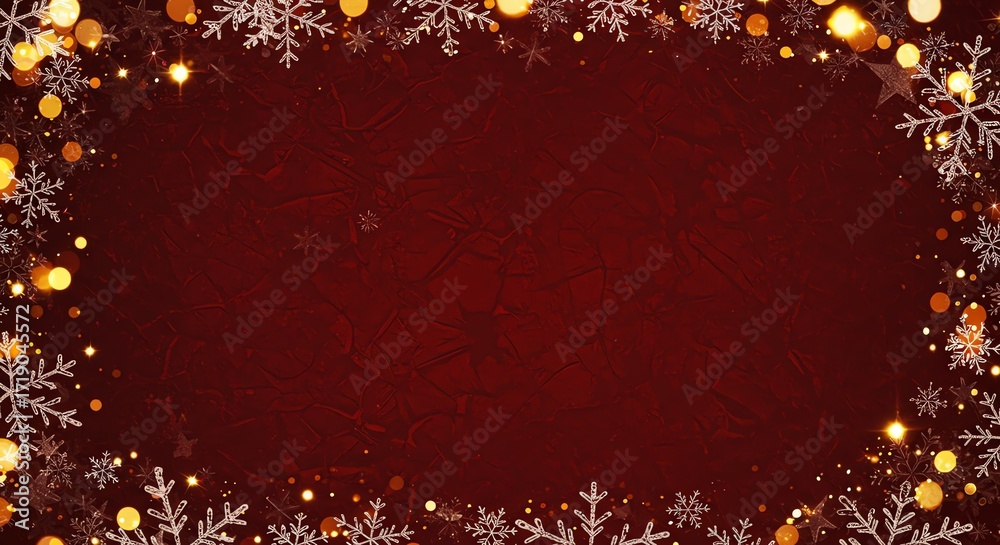 Red background with snowflake and star decorations #1719045572