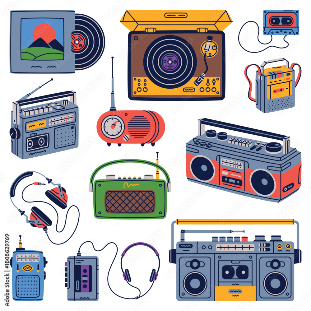 Retro Music Player and Cassette Recorder Vector Set #1808629769