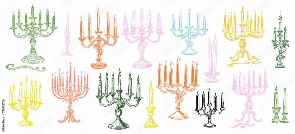 Retro Vintage Сandelabra Hand Drawn Sketch Charcoal Vector Illustration. Vintage Candelabrum for Creative Design. Candlestick Chalk Sketch Line Art Drawing. Vector Illustration #1794482706