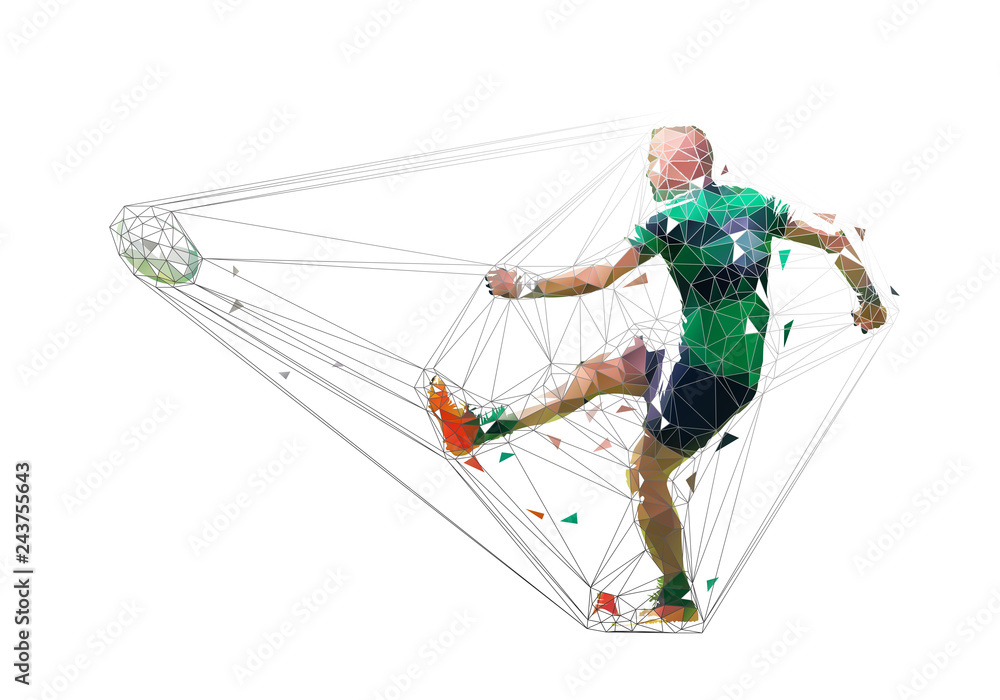 Rugby player kicking ball, isolated low poly vector illustration. Team sport #243755643