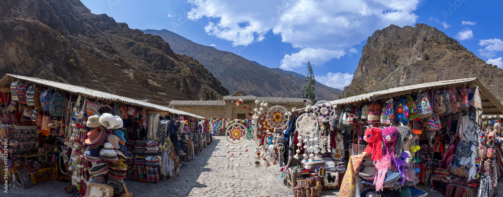 Sacred Valley, Peru, Cusco, Ollantaytambo Inca archaeological site and an indigenous town with original native population and artisan market #1952924905