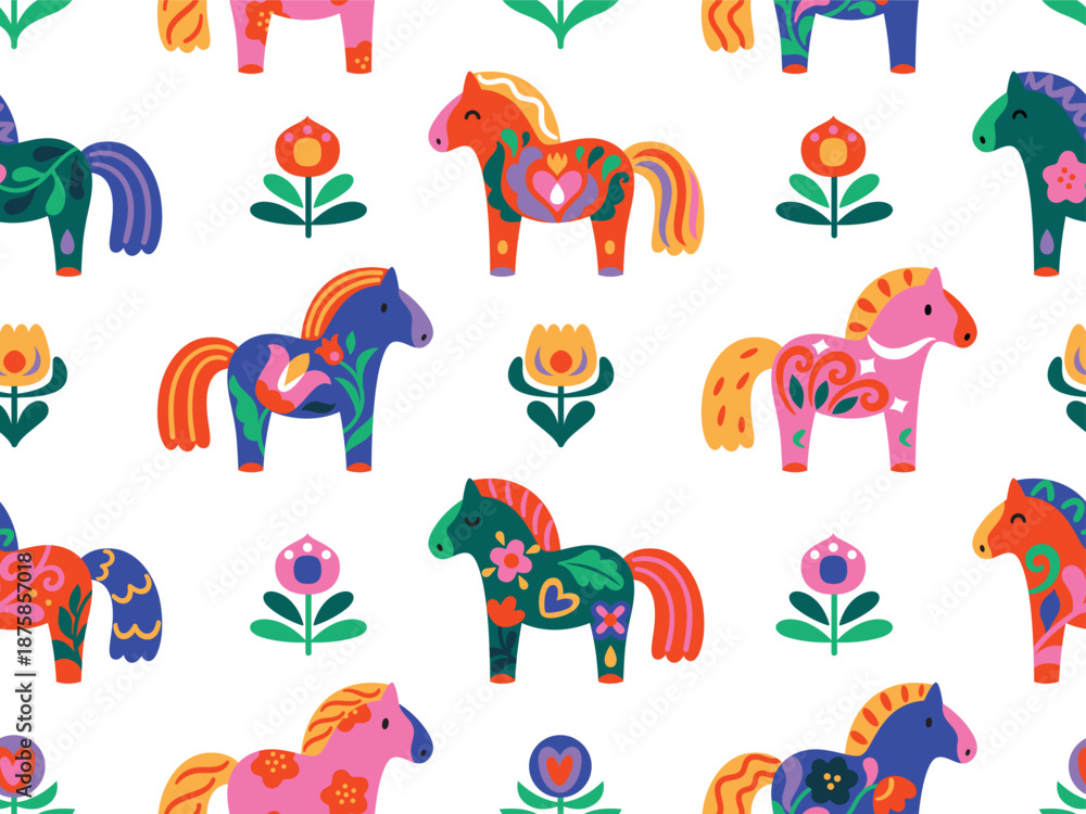 Seamless pattern with Dala Horses #1875857018