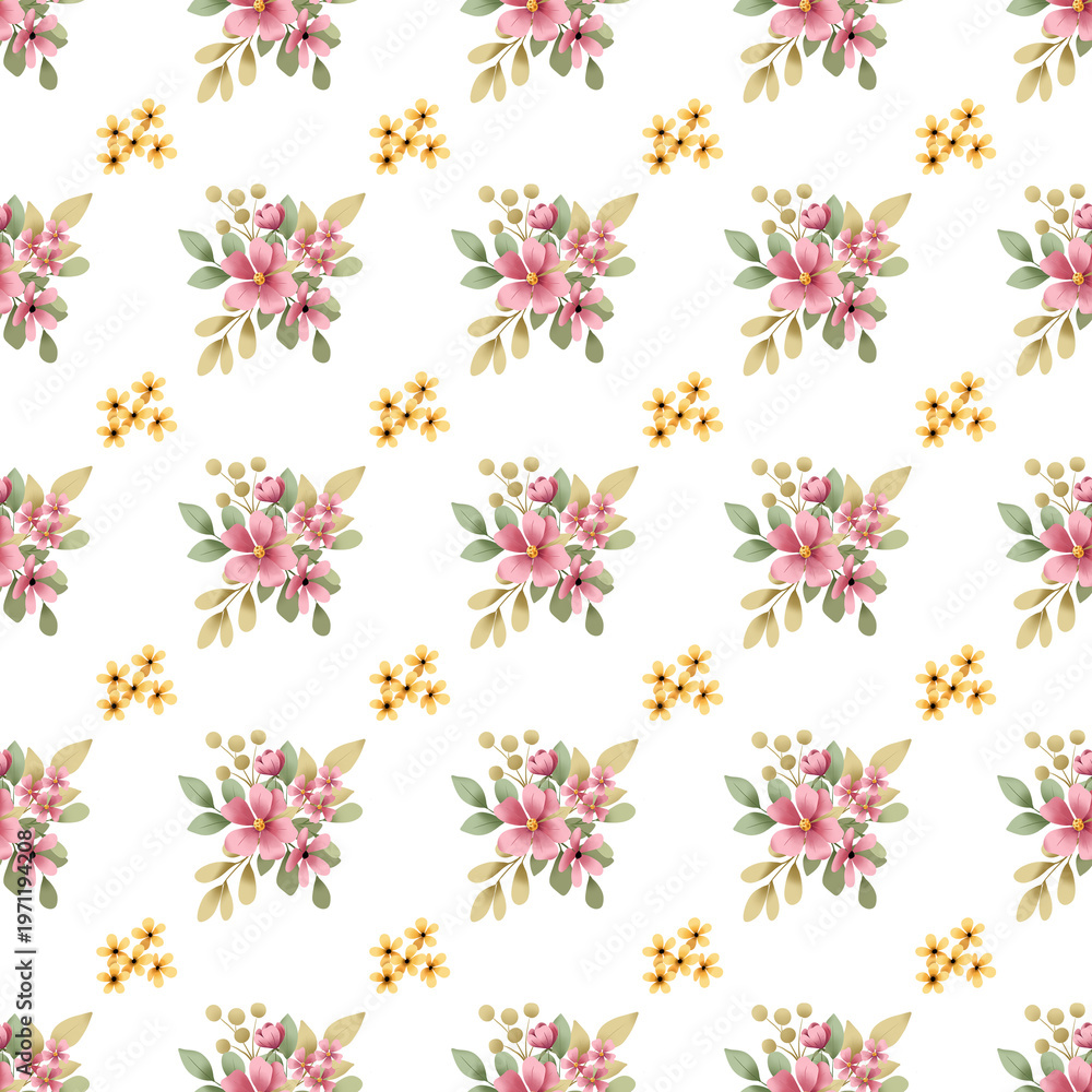 Seamless pattern with flowers and leaves, repeating paper, background. Floral backdrop for textile, fabric, wallpaper. Hand drawing.. #1971194208