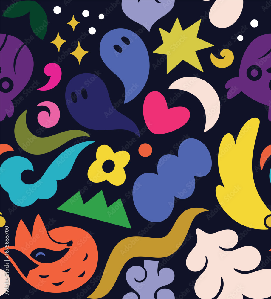 Seamless pattern with playful folk Icons in colorful style #1875855700