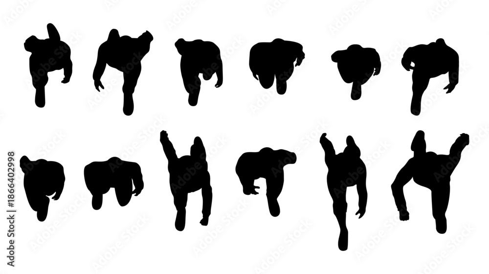 set of people walking top view in city silhouette for architectural men, women and businessman. black shadow plan vector illustration. #1866402998