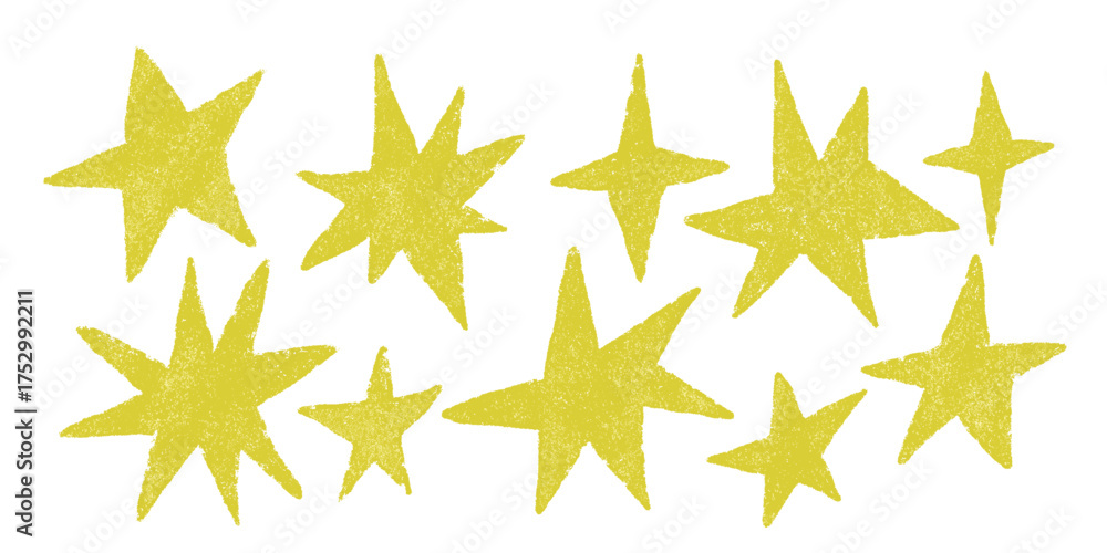 Set of yellow hand drawn stars with crayon texture. Vector shapes for collage #1752992211