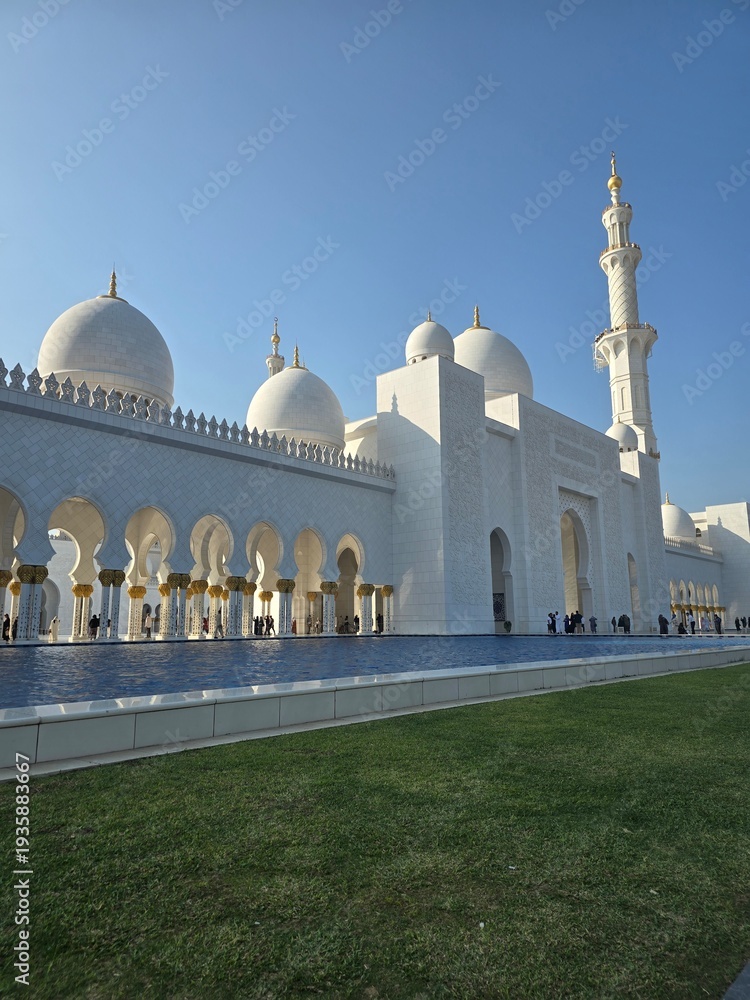 Sheikh Zayed Grand Mosque with white marble architecture and reflection pool #1935883667