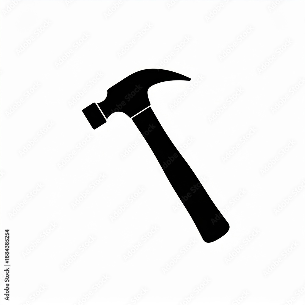 Simple Black Silhouette Of A Hammer Tool On A White Background Representing Construction And Repair #1884385254
