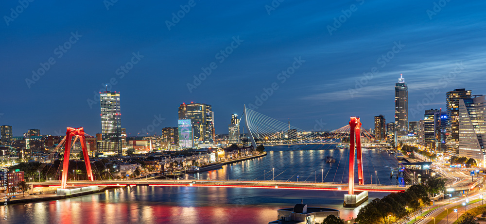 Sky line of Rotterdam at night over the river Maas #537739968
