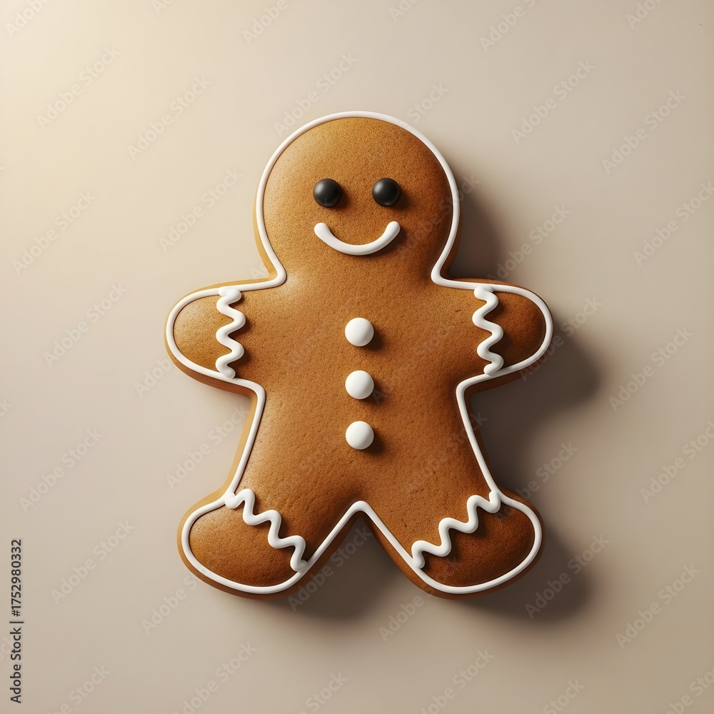 Smiling gingerbread man cookie Christmas holiday treat on a light beige background #1752980332