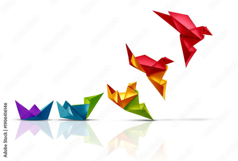 Success Development Plan as a Personal skill training Concept and growth strategy or corporate model innovation as a motivational metaphor for growing success from simple to complex as origami boats. #1906416146