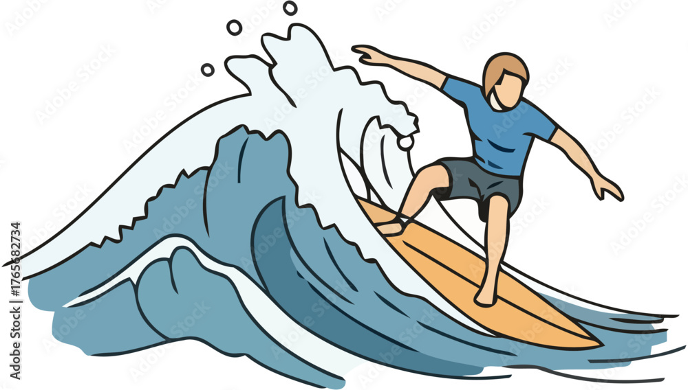 summer vibe surfing, adventurous unfazed, clean outline, minimal flat color style, plain white background #1765682734