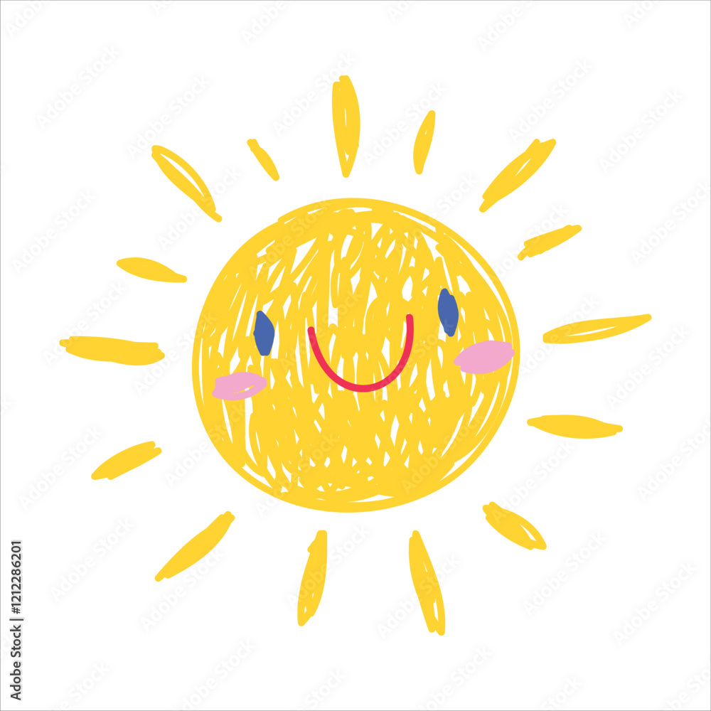 Sun as Kids Doodle Simple Hand Drawn Element Vector Illustration #1212286201