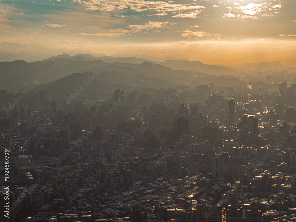 Taipei Finacial District, capital city of Taiwan, with view of Taipei 101 Tower standing amid skyscrapers #1924587709