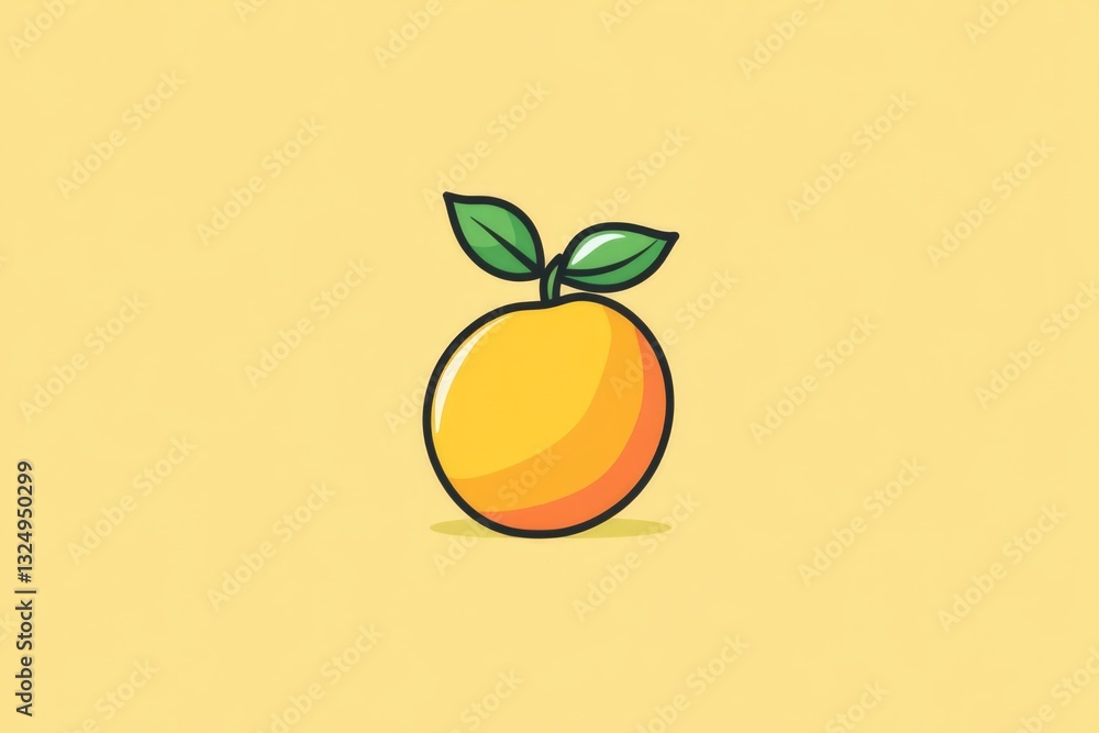 This charming cartoon-style peach, emphasized by a lively yellow background, brings forth a sense of playfulness, youthfulness, and delightfulness through its design. #1324950299
