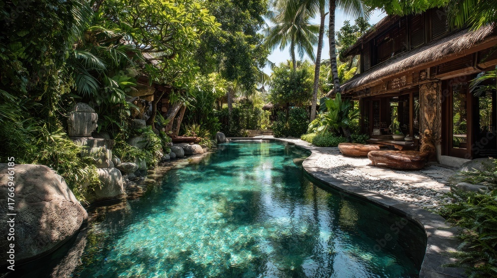 Tranquil Turquoise Pool Oasis: Lush Tropical Villa Retreat in Bali #1766946185