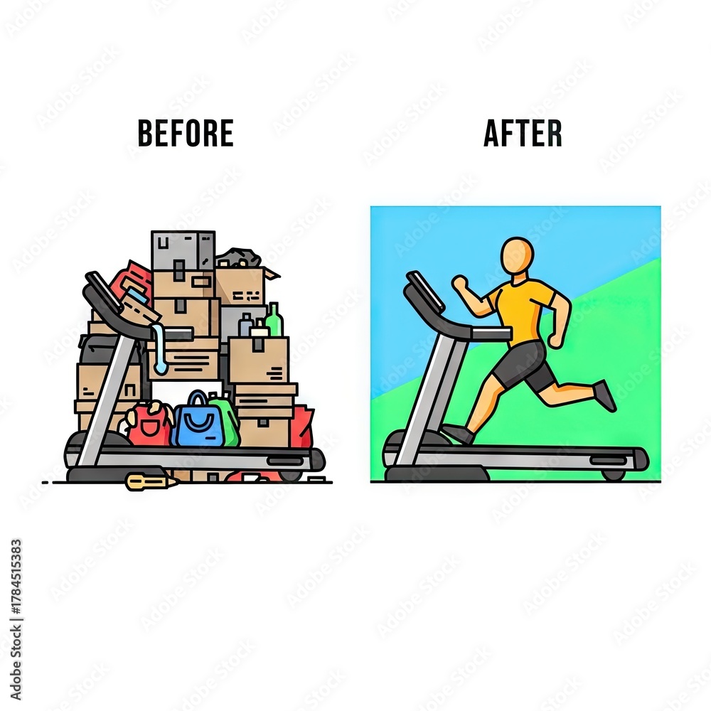 Treadmill Transformation Comparison Before And After Depicting Clutter To Exercise Illustrated Design #1784515383