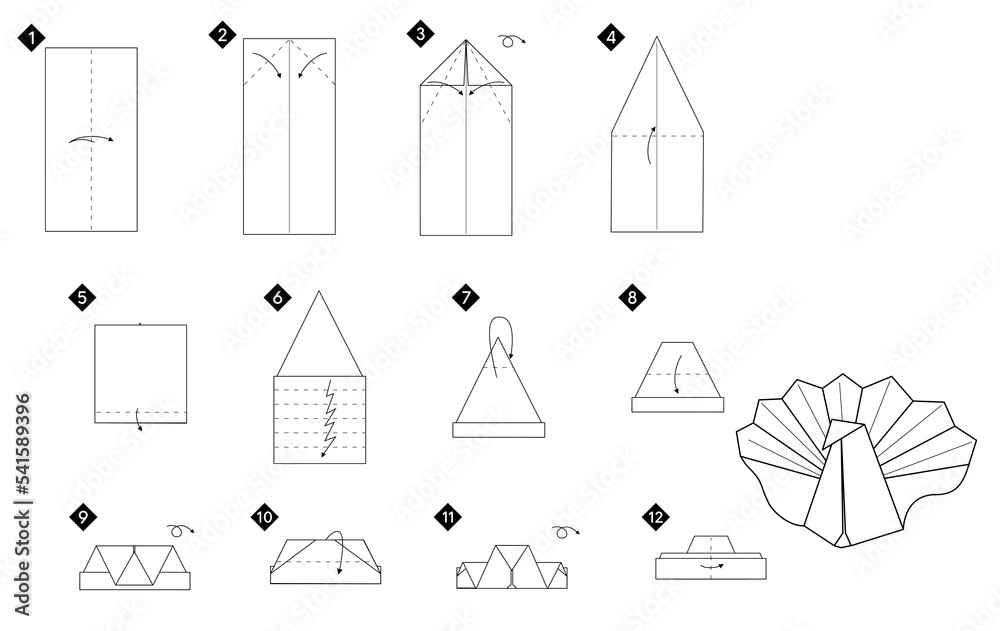 Tutorial how to make origami peacock. Step by step instructions #541589396