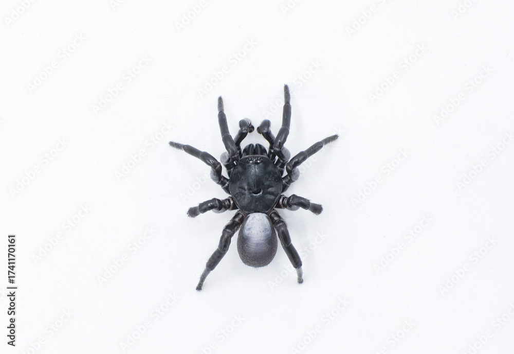 Ummidia rongodwini is the scientific name for a type of cork lid trapdoor spider native to the southeastern United States. Isolated on white background with copy space #1741170161