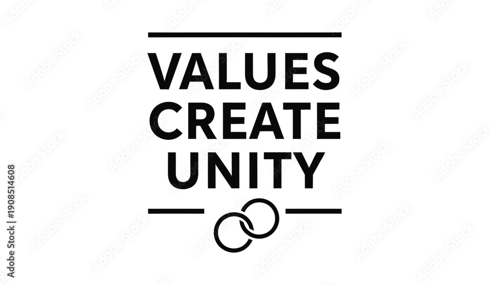 Values create unity: symbolic graphic with interlocking rings, representing connection, community, and shared principles. #1908514608