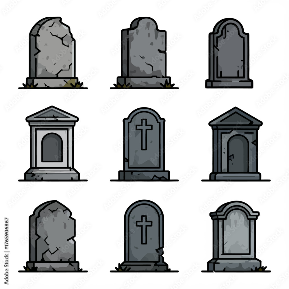 vector illustration of an old cemetery, horror tomstone set flat design for halloween decoration #1765906867