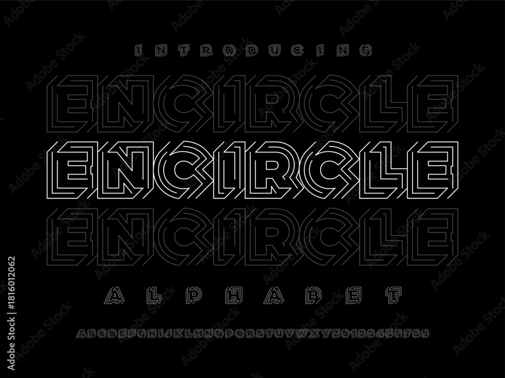 Vector of modern abstract maze line style alphabet design with uppercase and numbers #1816012062