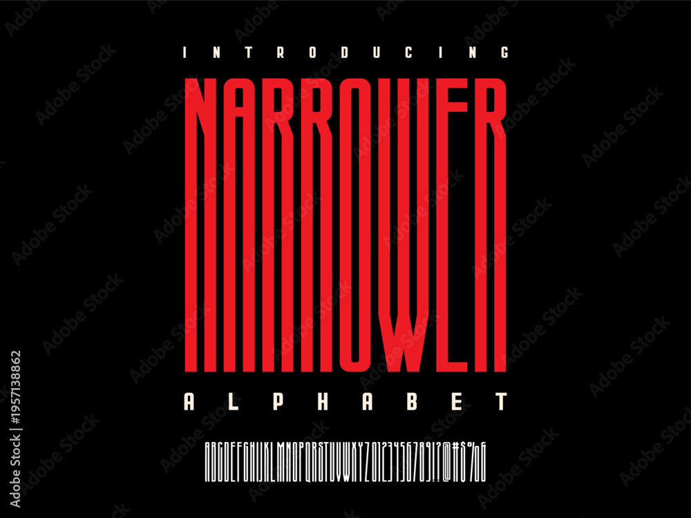 Vector of stylized condensed alphabet design with uppercase, numbers and symbols #1957138862