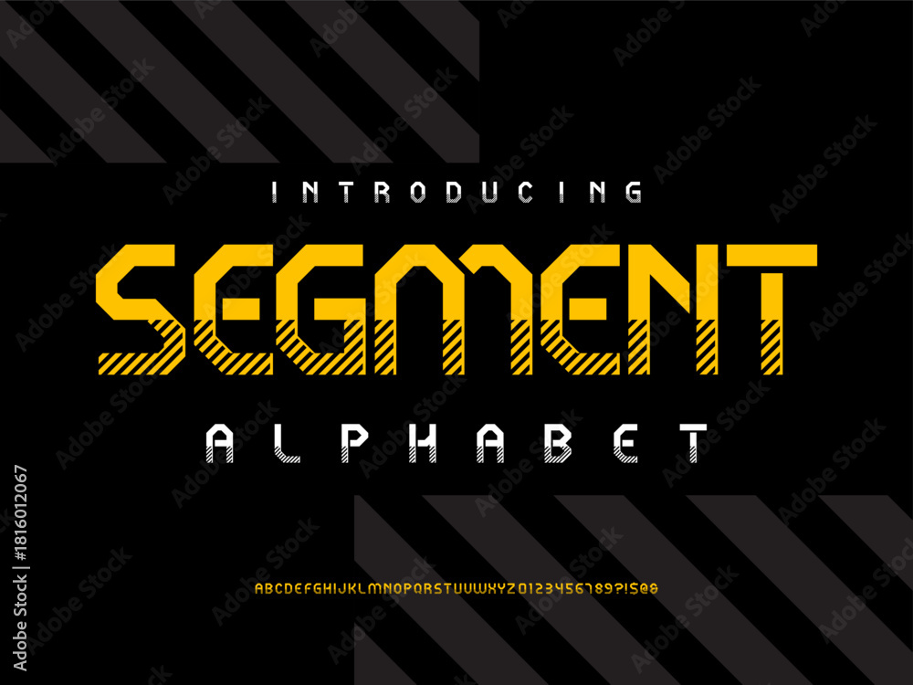 Vector of stylized modern tech alphabet design with uppercase and numbers #1816012067