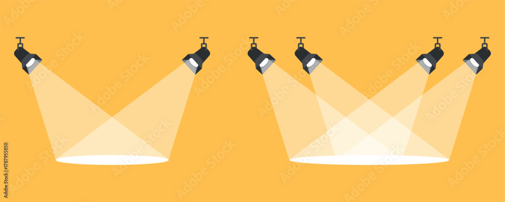 Vector Stage Spotlights and Light Beams on Orange Background #1787955850