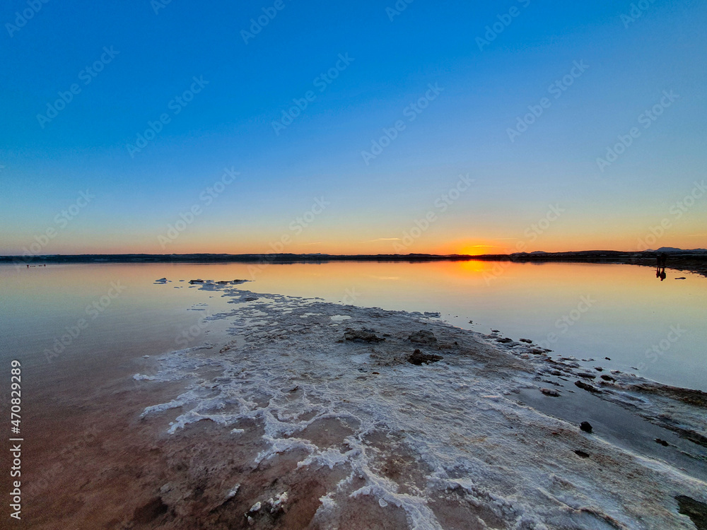 Vega Baja del Segura - Torrevieja - Salinas de Torrevieja, un lago salado, un paraje natural donde los atardeceres son mágicos y los reflejos y formaciones salinas son un espectáculo de la naturaleza #470829289