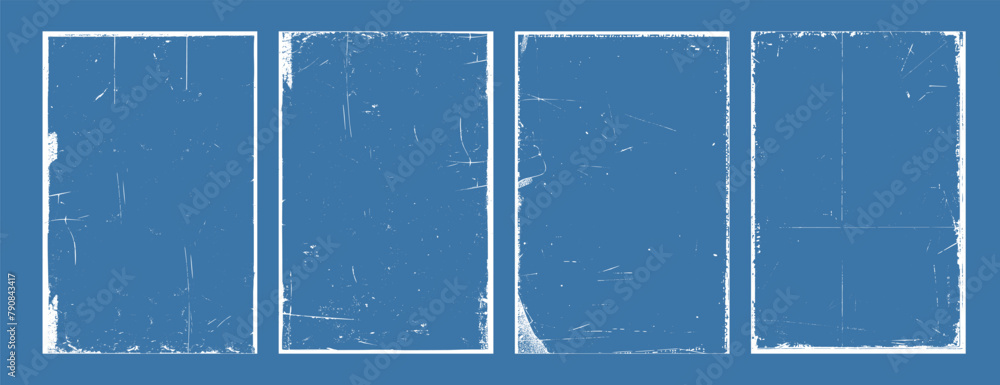 Vintage Grunge Overlay Texture With Scratches. Set of trendy retro photo worn and dusty vector illustration for poster art or social media. #790843417