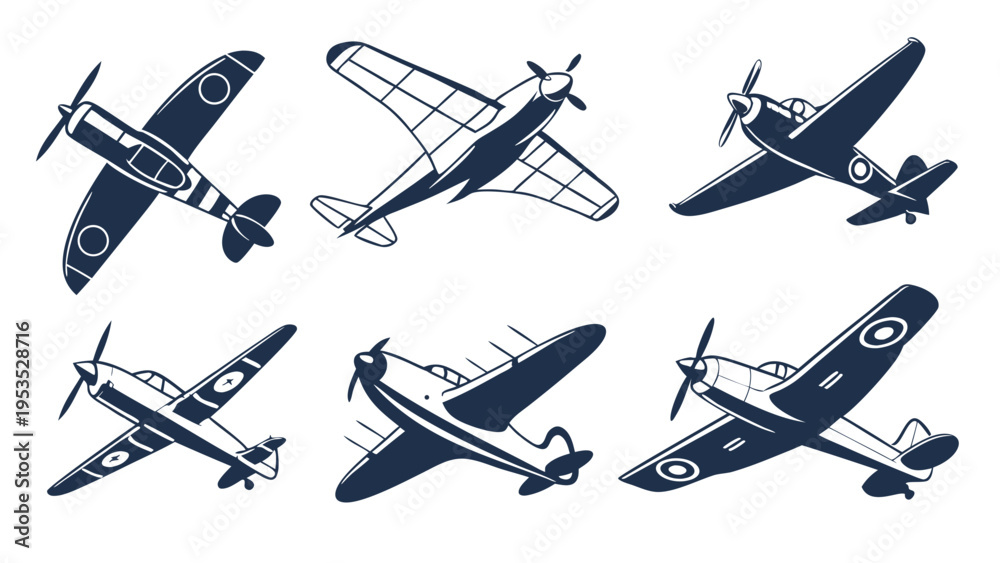 Vintage Military Aircraft Silhouettes Set for Aviation History Design Projects and War Themed Graphics #1953528716