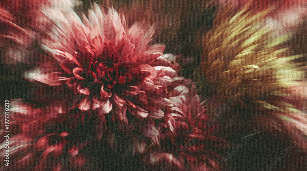 Vintage Motion Blur Floral Still Life with Red Chrysanthemums in Vase #1777710219