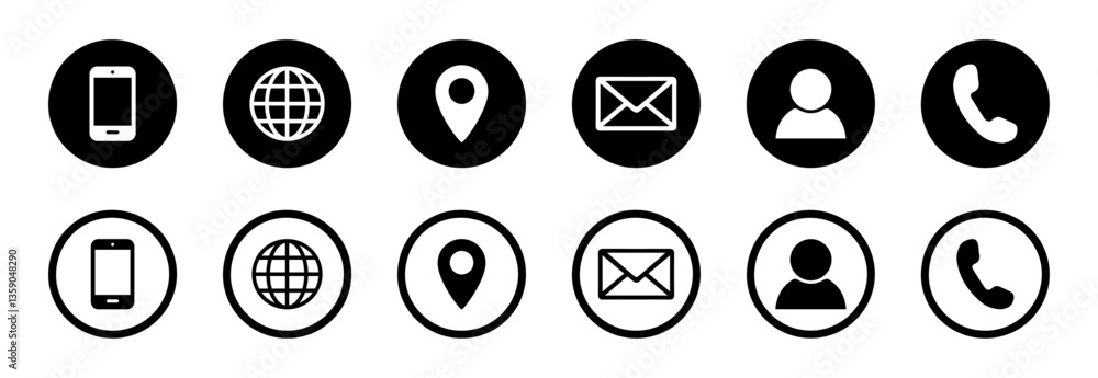 Visiting card icon set. Set of contact us icons for web and website. Contact icons phone, call, location, globe, use for web and website. #1359048290