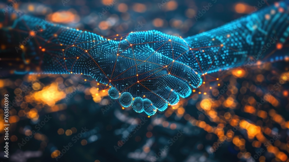 Visualization of a secure handshake in digital diplomacy and international relations #763510393