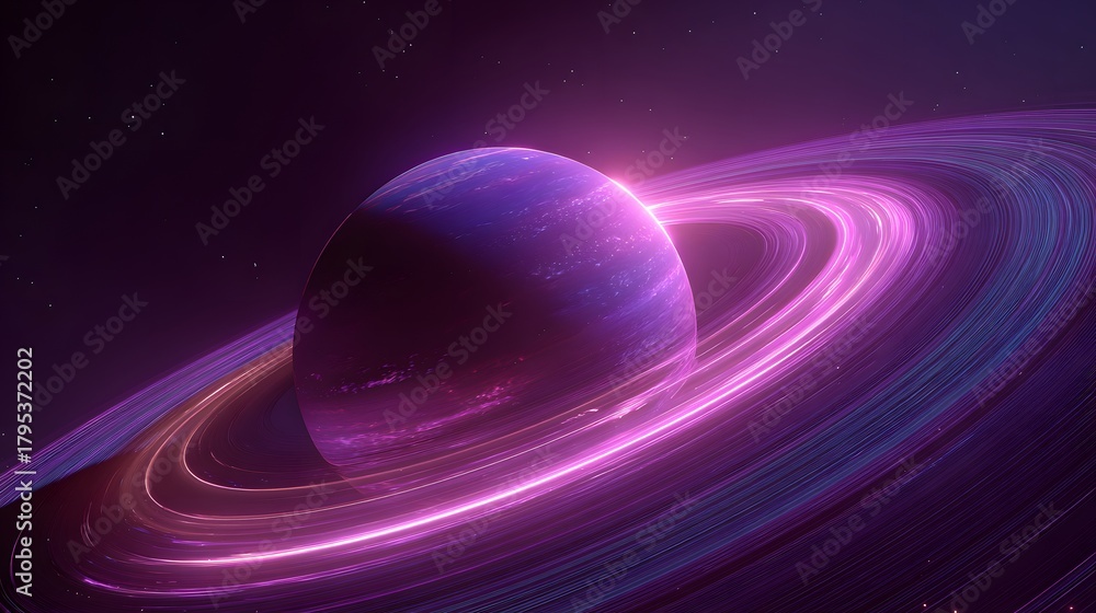 Vivid Visualization of a Glowing Purple Planet with Ethereal Rings in Cosmic Space #1795372202