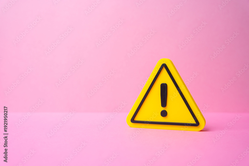 Yellow attention sign on pink background. Important message and information. Minimal warning symbol design for announcements marketing alerts and communication concept. #1921950217