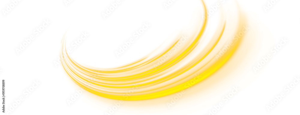 Yellow neon wave flows smoothly across abstract frame. Curved light trails illustrate motion, optimism, and energy. Perfect PNG for marketing, tech, or futuristic visuals. #1959708899