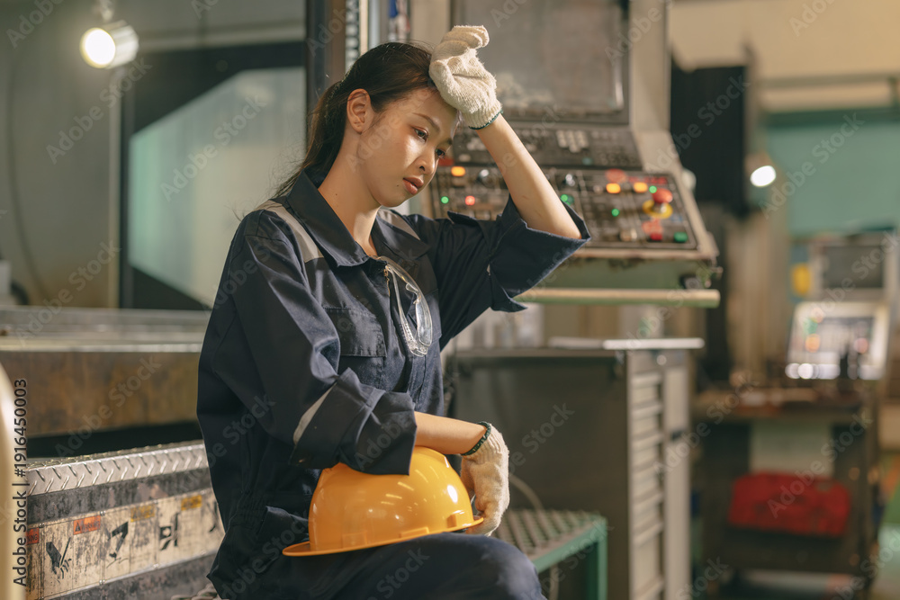 Young Asian woman worker hardwork in heavy industry, Engineer labor female tired fatigue exhausted #1916450003