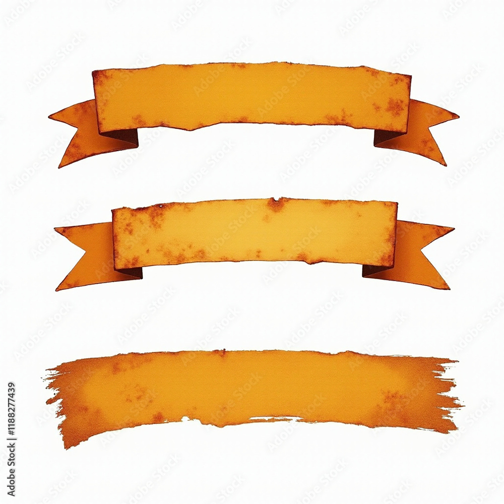 A collection of vintage-style yellow banners featuring distressed edges and a rustic appearance. #1188277439