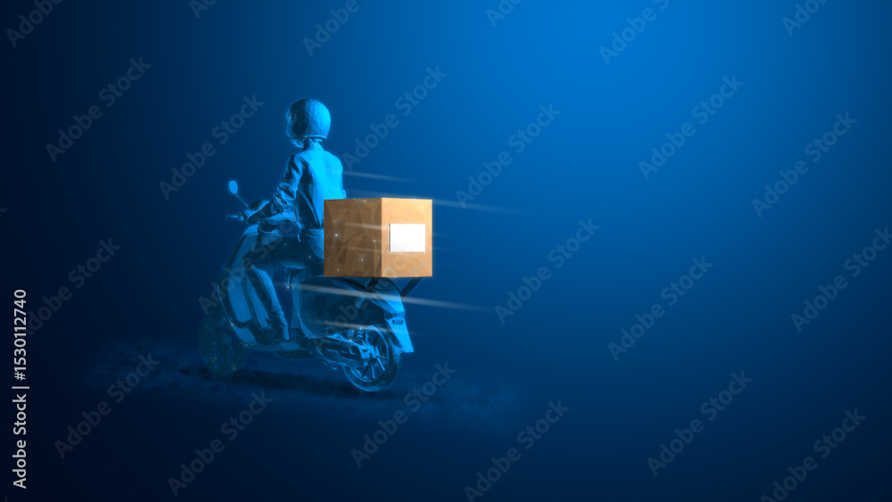 A digital illustration of a delivery scooter with a package, representing fast shipping and modern logistics. #1530112740
