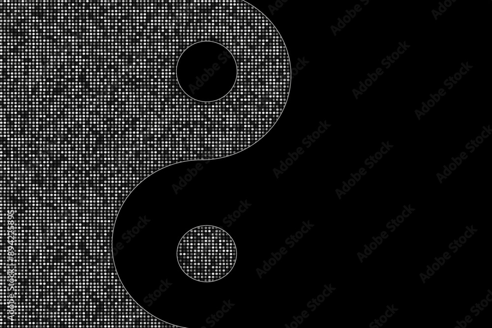 A yin-yang symbol in black and silver. Black yin and yang background with silver glitter. Yin and yang. #894225895
