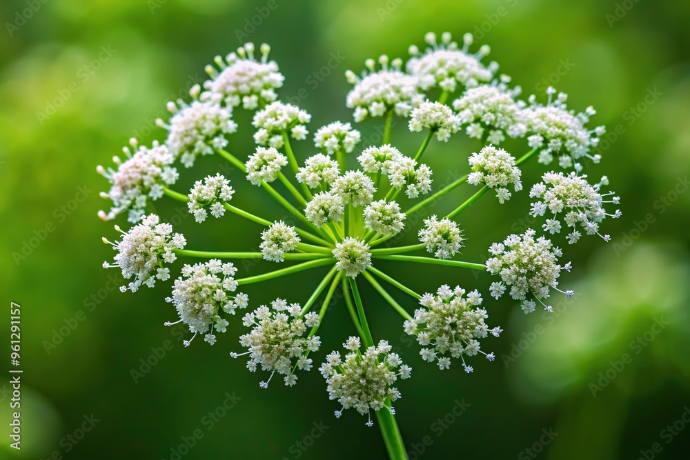 Asymmetrical heart-shaped inflorescence of Pimpinella major, also known as Greater Burnet Saxifrage or Hollowstem Burnet Saxifrage #961291157