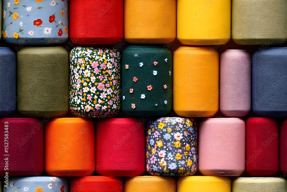 Colorful patterned jars arranged in a vibrant display #1527583483