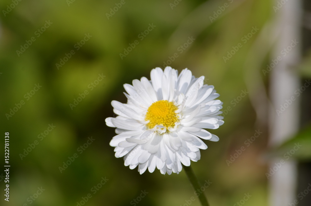 Common Daisy Bellis. A perennial herbaceous plant of the Asteraceae family. The inflorescence is medium-sized with long white-pink petals and a yellow core. The petals are arranged in several layers. #1522781138