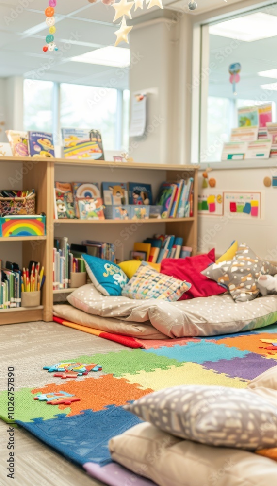 Cozy Preschool Corner with Children Collaboratively Solving Puzzle in Educational Setting #1026757890